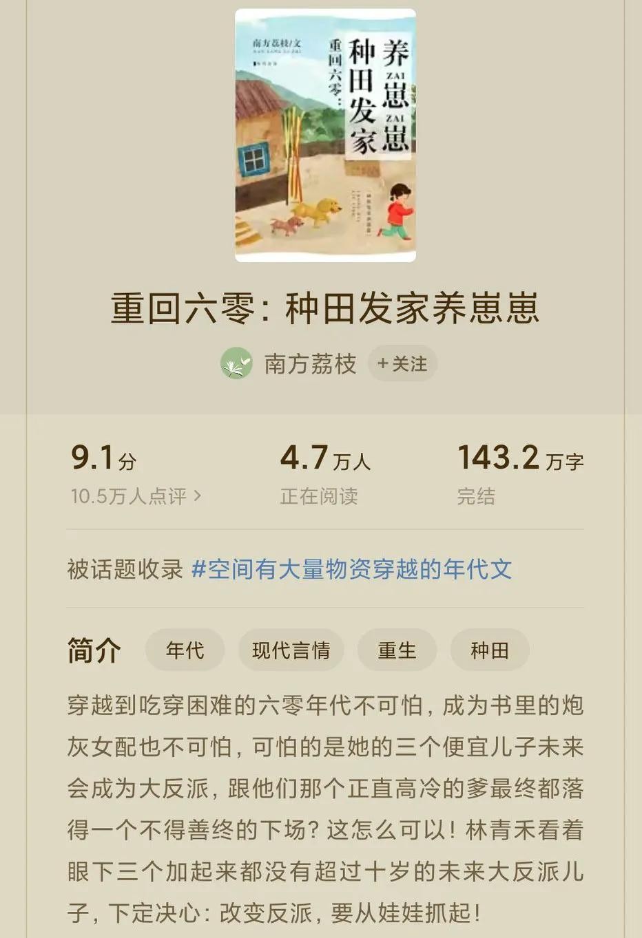 3.《重回六零,种田发家养崽崽》作者:南方荔枝