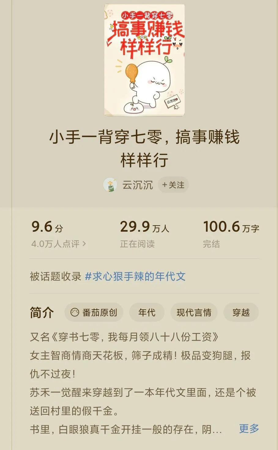 5.《穿书七零我每月领八十八份工资》作者:云沉沉