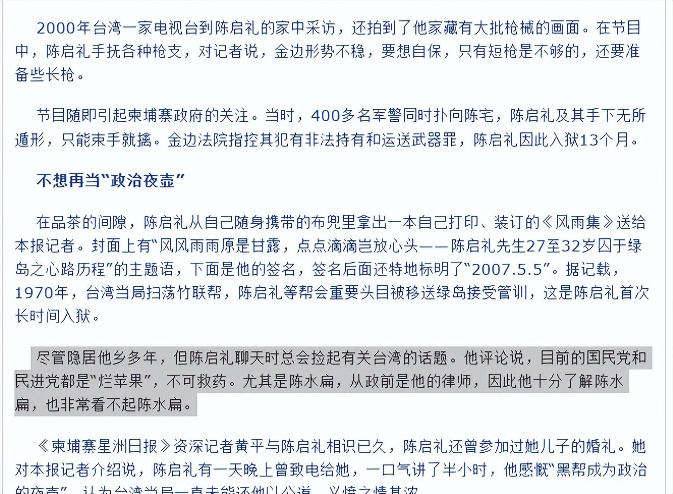 陈水扁也成了他口中的不齿之人。