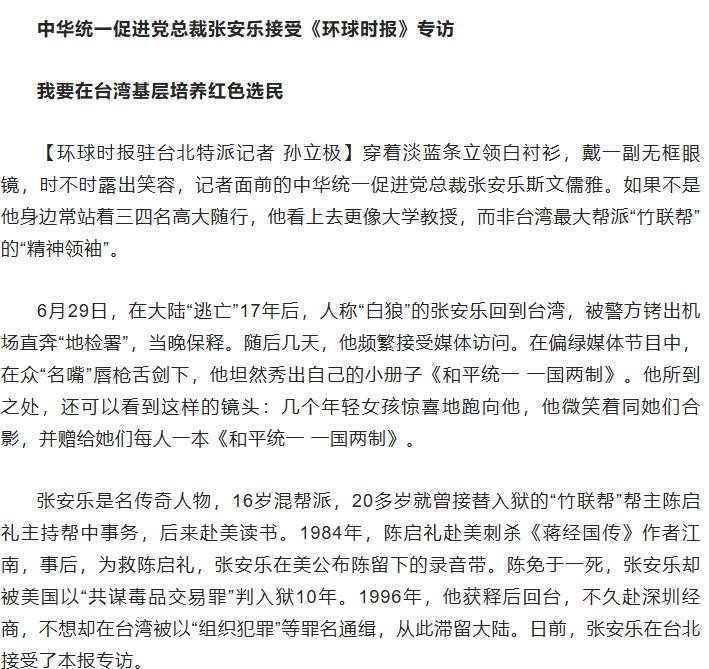 竹联帮大佬:中华民国4个字是两岸统一绊脚石环球网竹联帮领袖:台湾够窝囊不敢承认自己是中国人环球时报揭秘台黑帮教父:不当"政治夜壶" 扁曾投靠门下CCTV.com