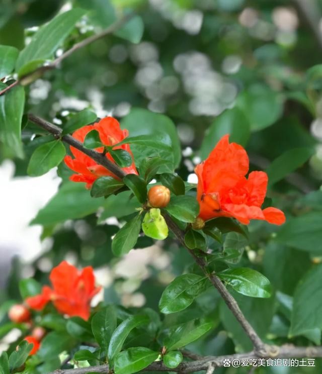 五月如火的榴花映入眼帘格外鲜明,枝叶间时时可以看到初结的小果。