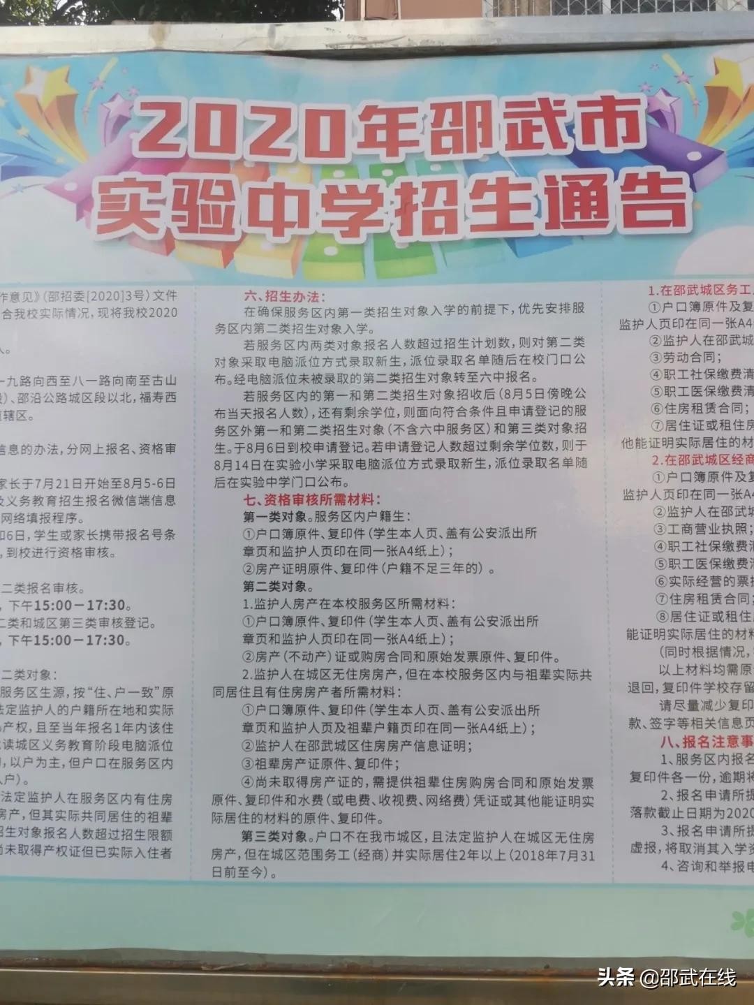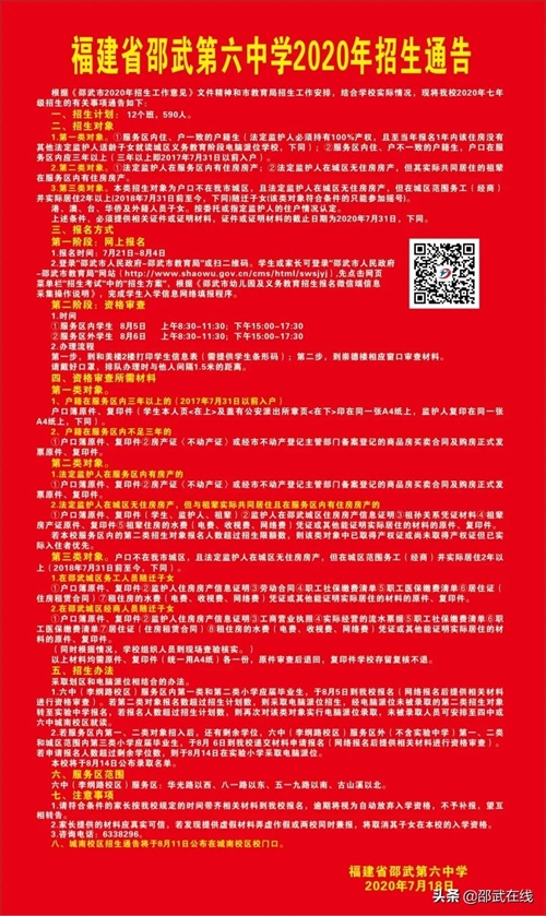 邵武市实验小学、实验中学、第六中学2020年招生通告