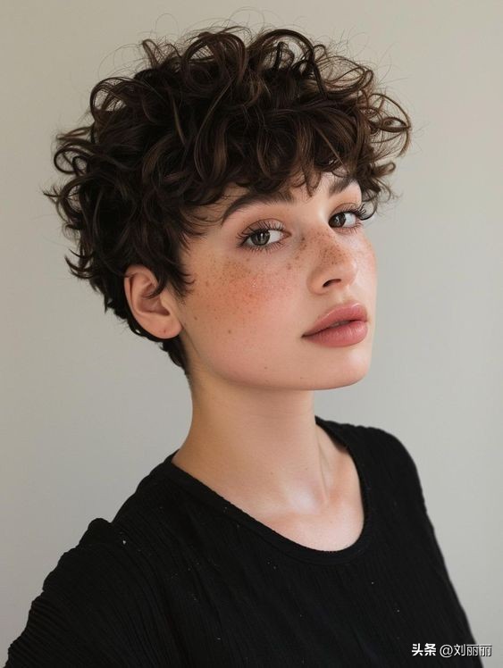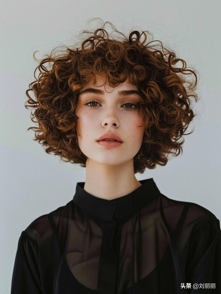 短发本身就具有一种干练、清爽的特质,而当它与满头卷相结合时,便产生了奇妙的化学反应。