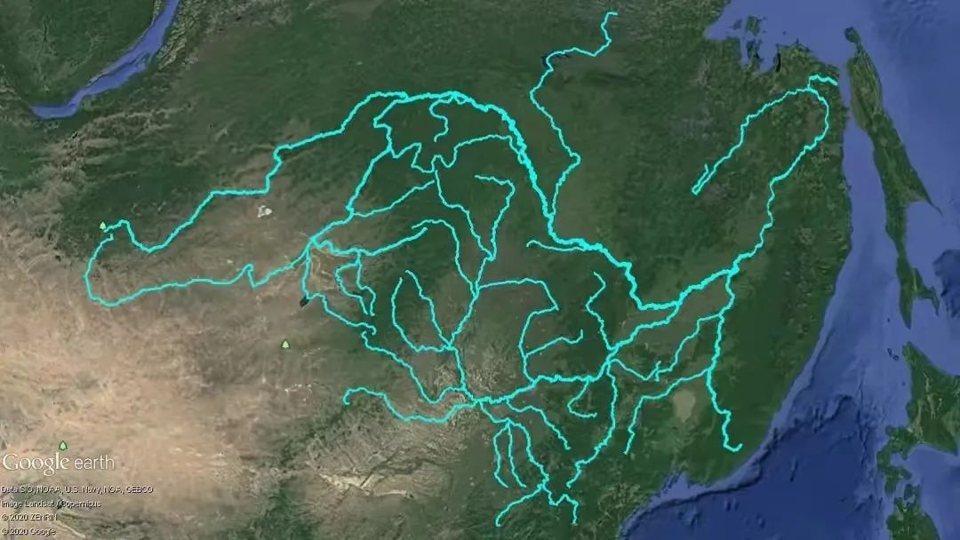 ▲黑龙江-阿穆尔河水系地图,网友“水穷云起1973”描绘,谢谢作者。