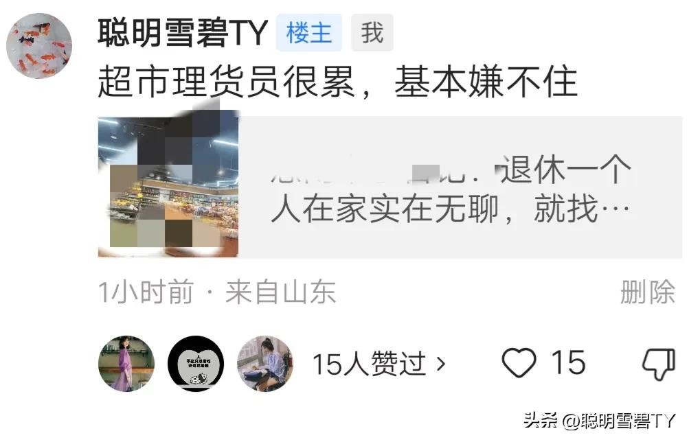 今早刷头条看到一篇文章,一位刚刚退休的友友,找了一个超市理货员的工作!