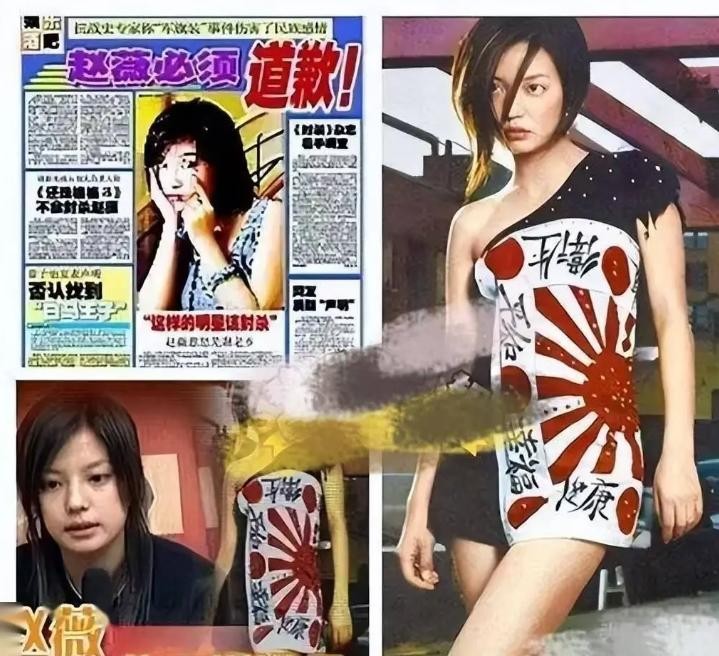 2001年,赵薇登上《时装》杂志封面,却因涉嫌穿着印有“日本军旗”的裙子而引发众怒。