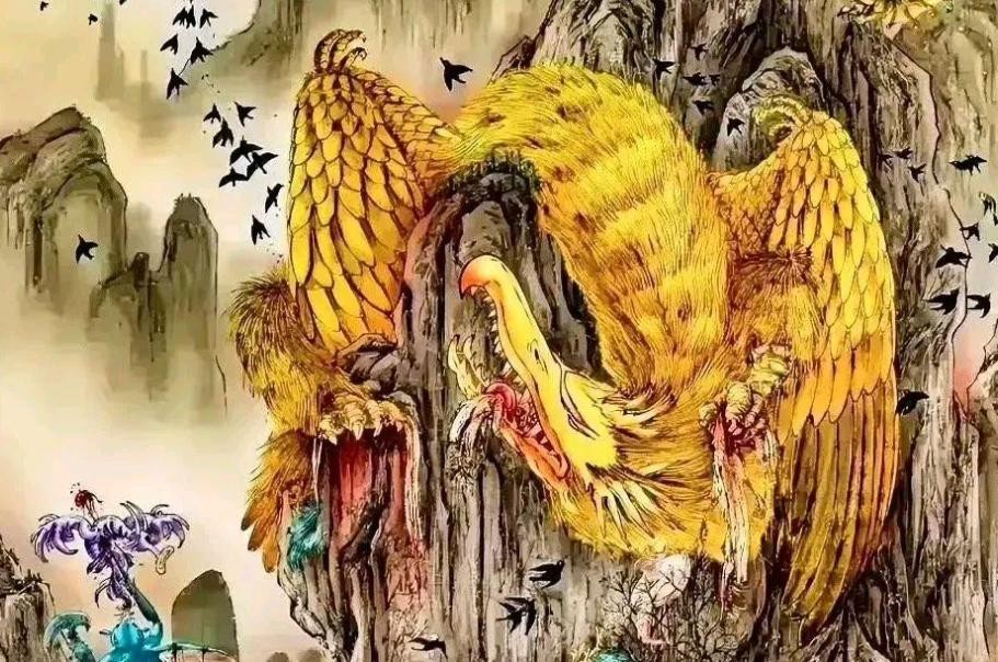 这一切的源头,正是那只大鹏金翅雕。它原本是山林中的一只猛兽,凭借着超强的飞行能力和锋利的爪子,迅速积聚起了自己的妖怪势力。随着时间的推移,大鹏金翅雕变得越来越强大,掌握了无穷的妖力。最终,它带领着一大群妖怪,像洪水般吞噬了狮驼国的百姓。无论是宫廷中的贵族,还是街头巷尾的普通百姓,统统未能幸免。妖怪们将整个狮驼国的百姓残忍屠杀,男人被斩杀,女人被抓走,孩子也未能幸免,满城的血流成河,尸体堆积如山。