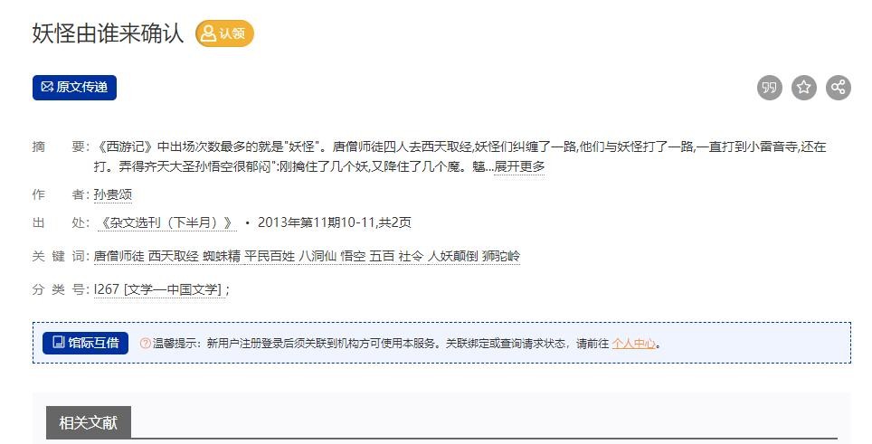 参考资料:[1]孙贵颂.妖怪由谁来确认[J].杂文选刊(下半月),2013,0(11):10-11
