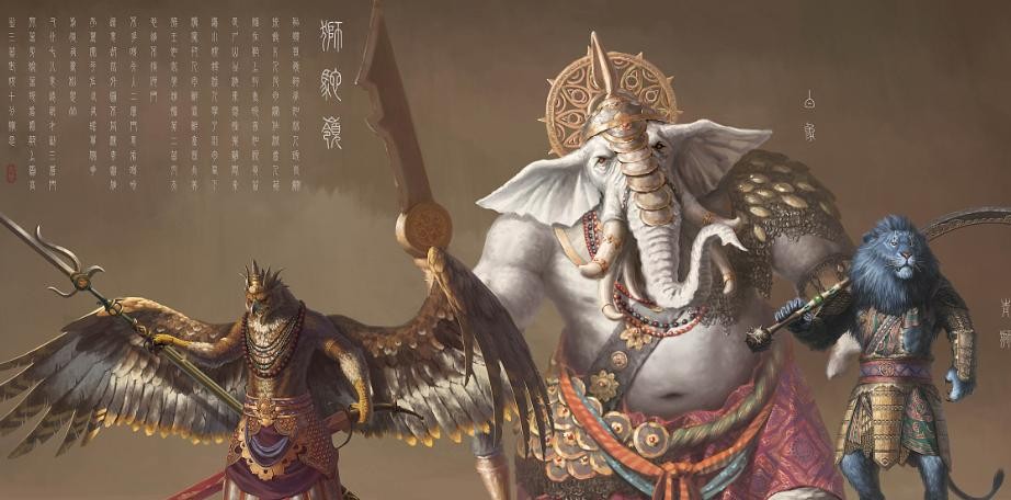 孙悟空步入狮驼洞的核心区域,穿过幽静的园林,终于来到了一个极为宽广的大厅。孙悟空站在不远处,目光锐利地扫过这三位妖王。中间的妖王是青毛狮子精,左侧的妖王是黄牙老象精,右侧的妖王是大鹏金翅雕。