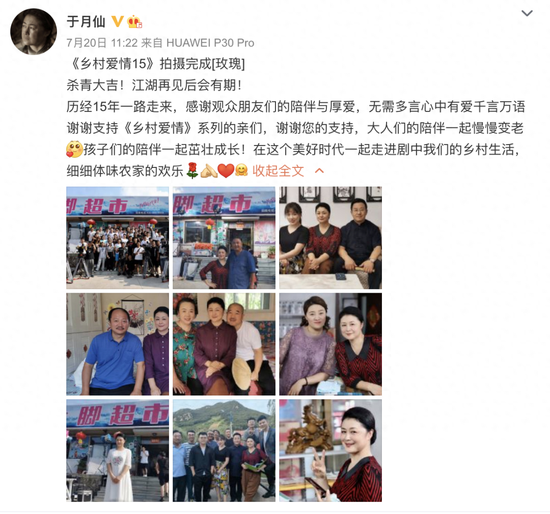 就在7月20日,在《乡村爱情15》杀青之际,于月仙还留下了一段动情的感言: