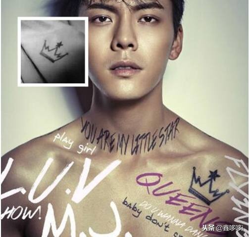 陈伟霆举行了一次一场名为“女王派对”的生日会,在他团队发布的海报中,他裸着的上半身有一处纹身特别明显,那就是这个带有星星的皇冠纹身了,看上去非常精致与可爱。都知道他称呼自己的粉丝为“女皇”,将她们当成自己爱人一样,而他自己则是国王了。在胸前纹上一个带有星星的皇冠纹身,星星是代表女皇一直像星星一样照耀着他,而他要将大家放在心上。