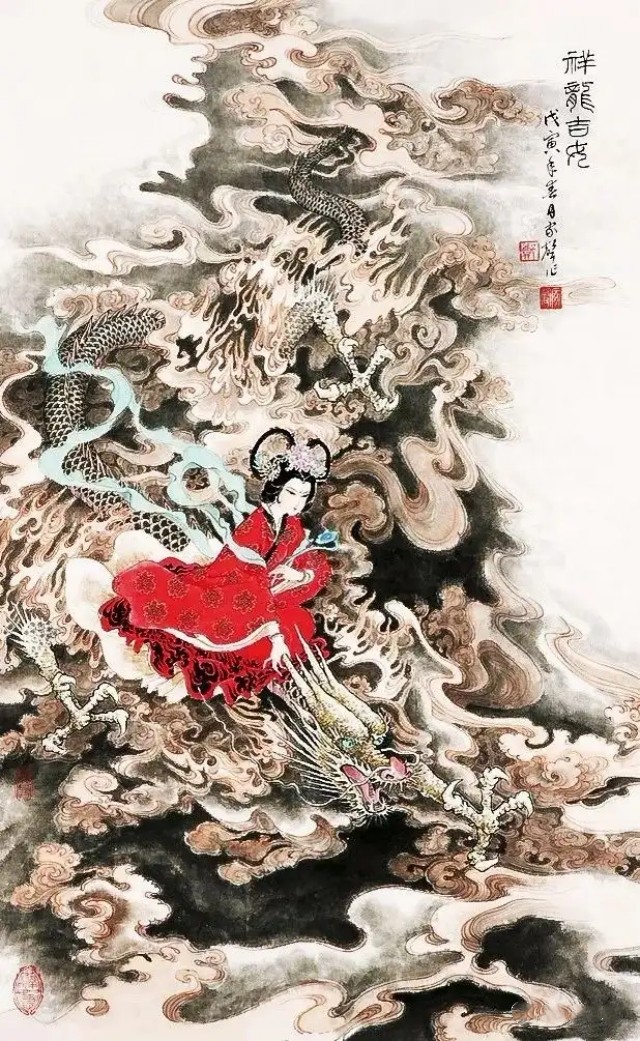 而当他运用深沉、暗淡的色彩时,画面则会营造出一种神秘、庄重的氛围,让人感受到龙的威严与神圣。