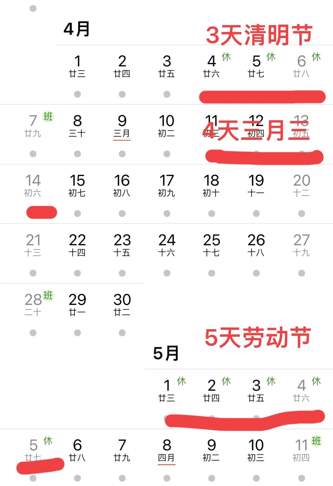 广西人民太幸福了,大家算一下整个4月5月,广西人民总共放了12天,比全国人民多2天。