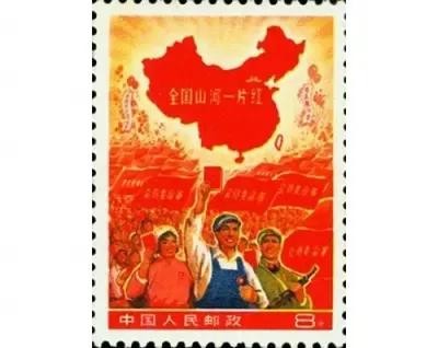 全国山河一片红是一套带有严重政治错误的邮票,一共一枚,面值8分。这张邮票的图案是上方为各省市自治区的地图(台湾省除外),下方是工农兵高举毛主席语录的游行队伍。因为整张邮票上面印有全国山河一片红的文字,所以集邮爱好者称之为“一片红”。