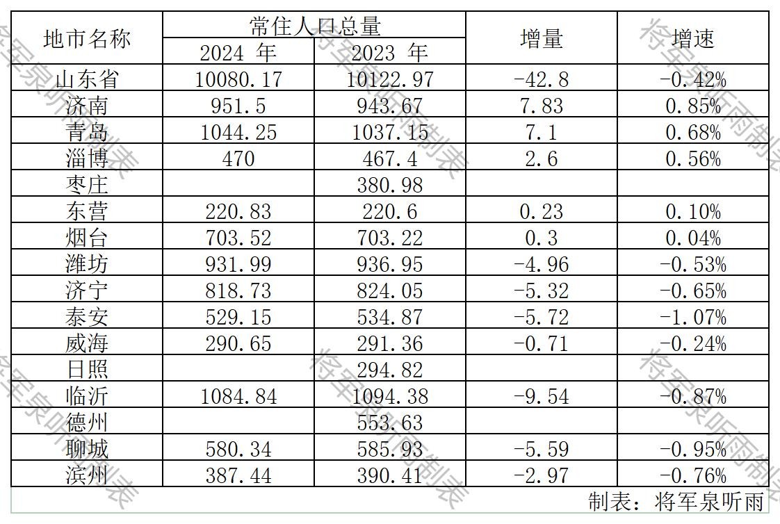 山东各市人口数量新鲜发布,济南.青岛均增长,老大难烟台终于增了