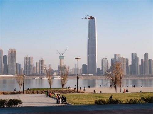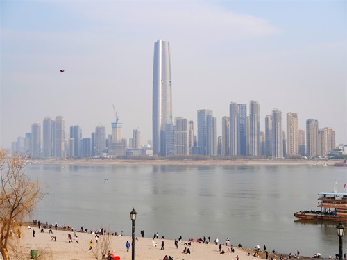 漫步于汉口江滩,对岸最惹眼的存在必须是武汉绿地中心大厦,隔江看过去,视野所及,没有任何建筑的高度能挨到它半腰,即使是语文学渣,瞬间不难想到一个成语——鹤立鸡群。绿地中心楼层高度475米,迄今为止的武汉最高楼,也是华中地区最高楼,应该还是长江岸边的第一高楼,这高度放眼全国已建成的摩天楼里也能进前十。不过,这楼高度是够了,颜值谈不上惊艳,越看越觉得它的比例不太协调,像是还有一大截没盖就封顶完事。网上查询了一下,原先设计楼高636米,仅次于世界第一高楼迪拜塔,建到三分之二高却被叫停,最后限高到目前这样子,好比一个腿脚敦实,看身材能长成易建联的男生,结果刚刚一米七冒头就骨骼闭合,体型横向发展成刘欢了。
