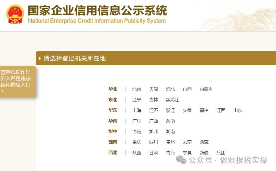 3、选择【营业执照上登记的省份】;