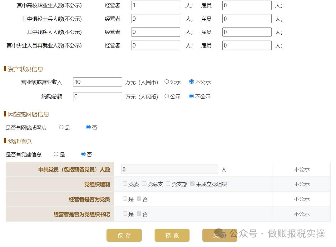 7、根据实际情况录入单位信息,选择【不公示】,点击【保存】。