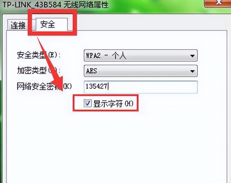 6、在弹出界面中,选择安全项,勾选显示字符,如下图所示: