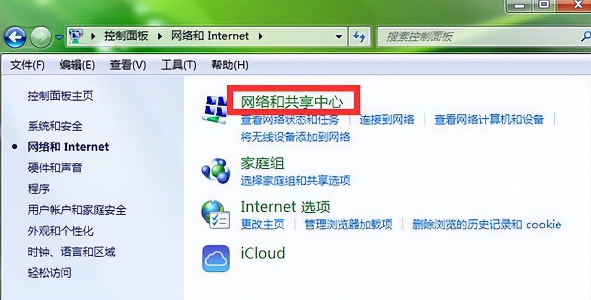3、打开网络和共享中心,如下图所示: