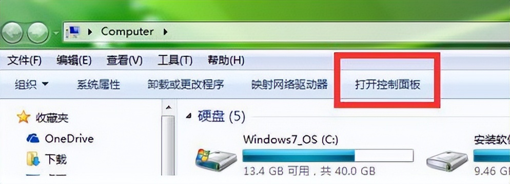 1、打开我的电脑,选择控制面板,如下图所示: