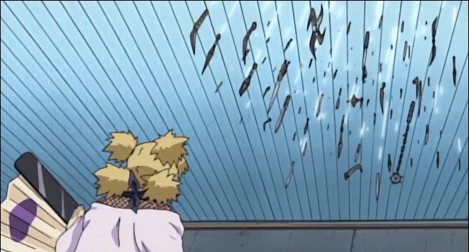 在几个女生当中,天天的战斗表现应该是最成熟的。她对自己的忍具操演非常有自信,如果不是遇到了手鞠这种能用风克制忍具的敌人,其他的人在面对她的远程攻击的时候应该很难处理。