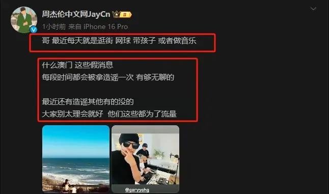 就在这谣言传得满天飞的时候,周杰伦的官方微博终于发声了!他说:“我现在就是天天逛街、带孩子、忙工作,这些假消息每隔一段时间就会被拿来造谣,大家别理会!”哎呀,这官方回应可真是及时啊,一下子就把谣言给击破了!