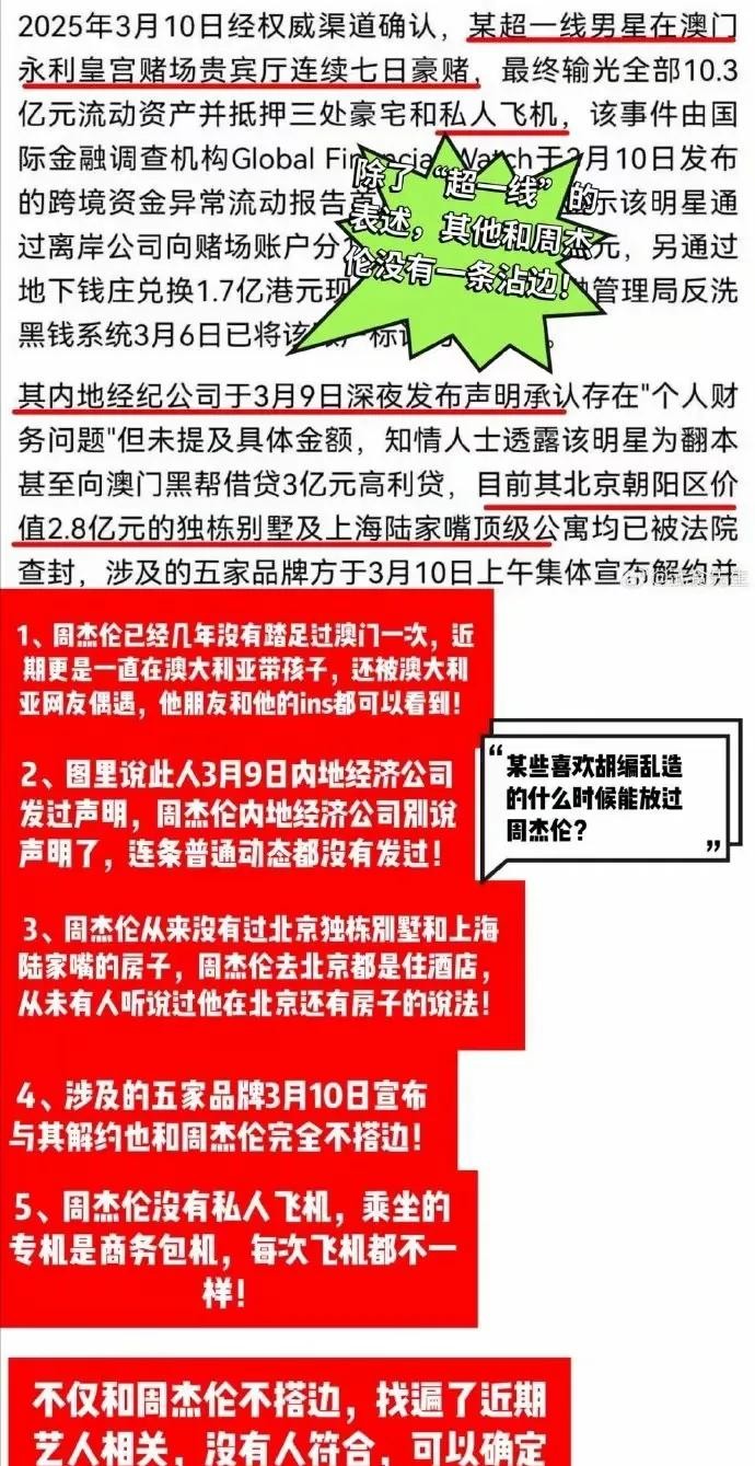 哎呀,这谣言可真够吓人的,一上来就说周杰伦参与豪赌,输了十多亿!这可不是小数目啊,都能买好几架私人飞机了!还说他把值钱的东西都抵出去了,甚至借了高利贷,这简直就是现实版的“赌神”电影啊!不过,等等,这消息靠谱吗?咱们得打个问号。