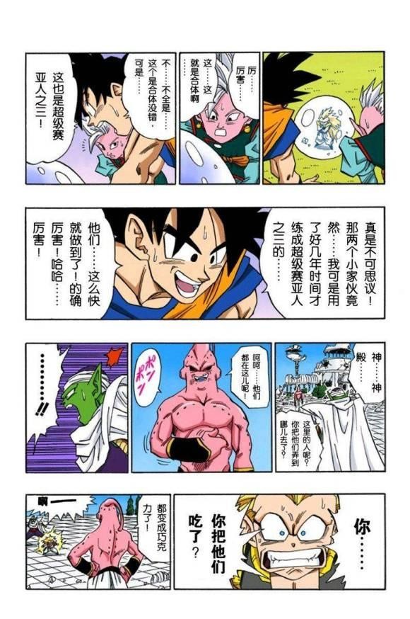 那么显然超二并不是强才能变,悟天克斯自然也是如此。常态悟天克斯>常态悟空、贝吉塔,并不代表他就一定能变超二,不然按这逻辑他也可以理所应当变成超三,为何悟空看见他变超三还要惊讶,甚至悟天克斯的变身超赛都是在精神时光屋里才学会的,之前常态融合出来就只是常态,要说按这种算法,悟空不大可能指望俩小孩单体就突破超二吧?所以纵然是超一悟天克斯,仍然是有强于胖布欧的可能,但这里暂时不把话说死了。