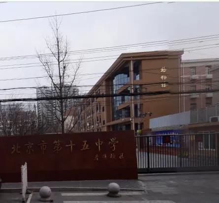 15中是北京市重点中学,首批示范中学,拥有初中和高中部,高中部位于陶然亭地铁站C口,初中部位于盆儿胡同原来140中学校址,2015年15中合并140中学,对口陶白、广牛、广外、大椿天4个学区。
