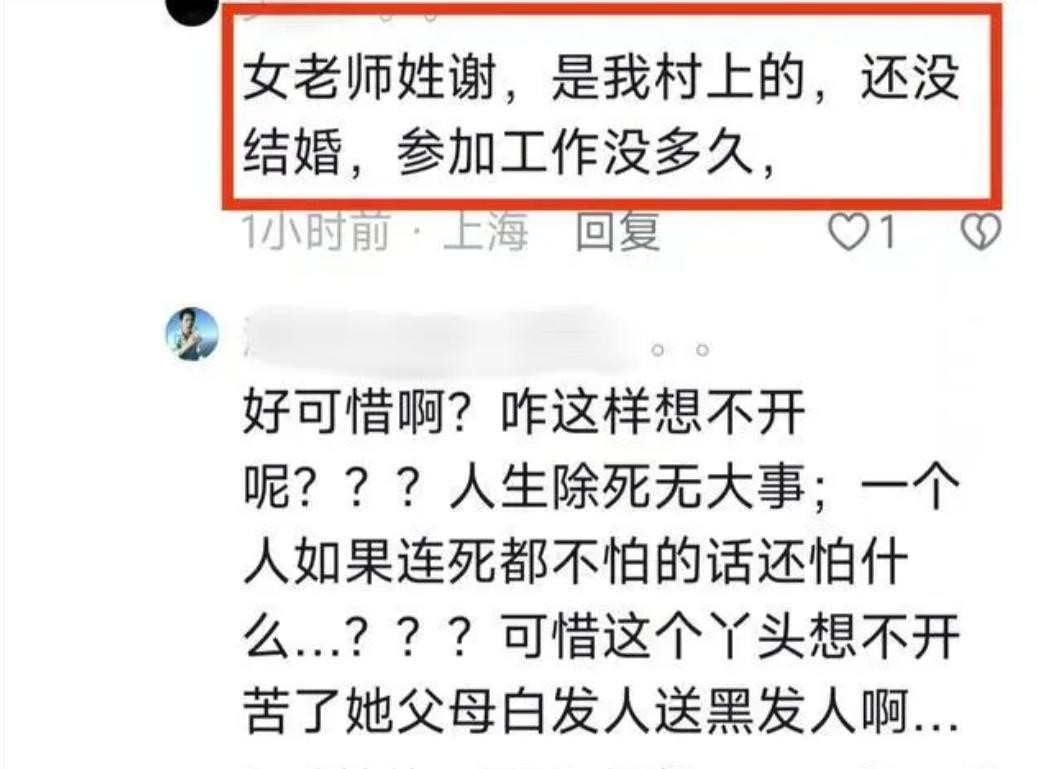 如果这么女教师自杀的原因真的像网上所流传的那样是因为父母的阻挠导致和男友分手最终想不开,那么或许在看着自己女儿的遗体的时候,他们的内心是极度悔恨的,后悔的是当初为什么没有答应自己女儿。