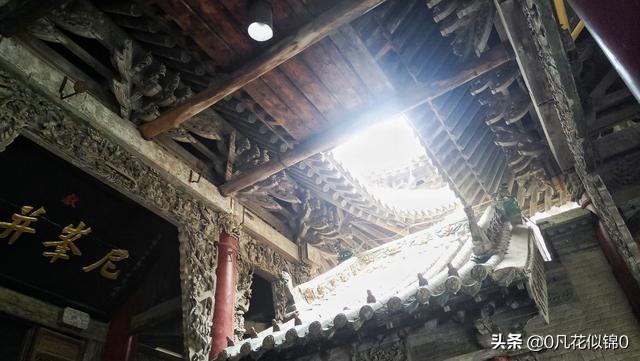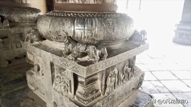 楼内竖有鼎柱,把巨大的3层戏楼凌空擎起,鼎柱底座刻有精美的吉祥瑞兽的石雕。