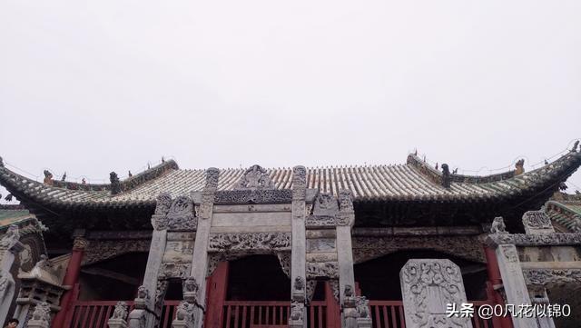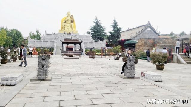 经过大拜楼,就可以来到春秋楼。原来的春秋楼可不是我们现在看到的这个景观,而是和前院近似的楼亭,里面原本有一尊关羽的塑像,可惜的是,在清咸丰七年春秋楼被反清的捻军焚毁,现在我们看到的就是遗址,上面那座关公夜读春秋的雕塑是后来才设置的。