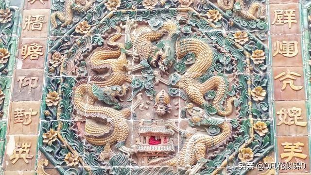 而社旗山陕会馆的琉璃照壁则完美的将两种风格结合在一起,各种琉璃烧制而成的吉祥植物、动物、神兽,匾额与楹联,“福”、“寿”字等图案组合成一幅完整图画,富丽堂皇。