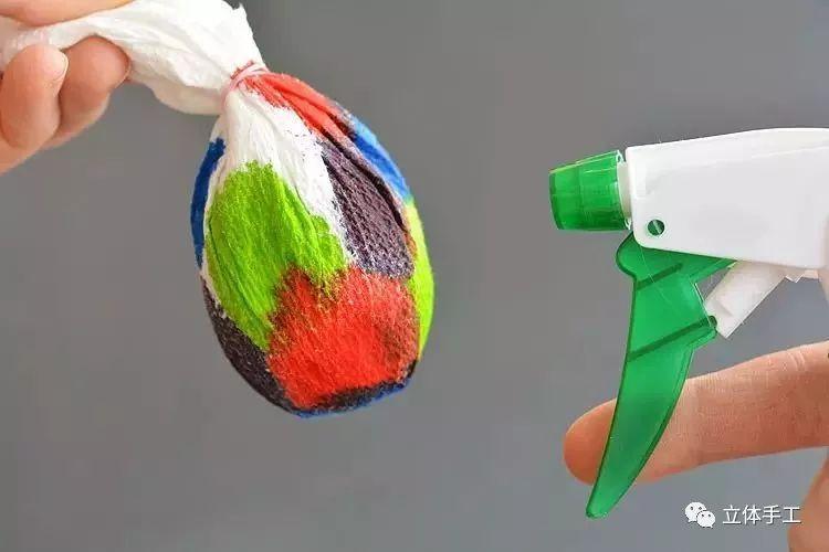 【准备材料】鸡蛋、卫生纸、染料、喷壶、水