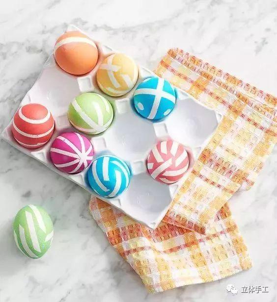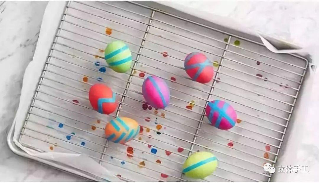最后把鸡蛋上的胶带取下来,鸡蛋上就会有条纹啦!