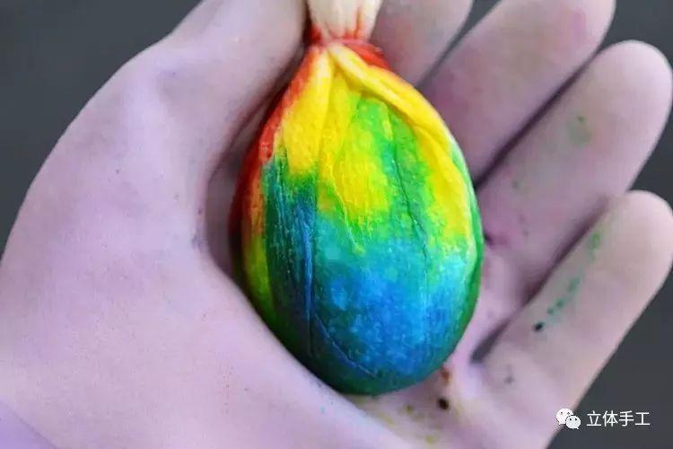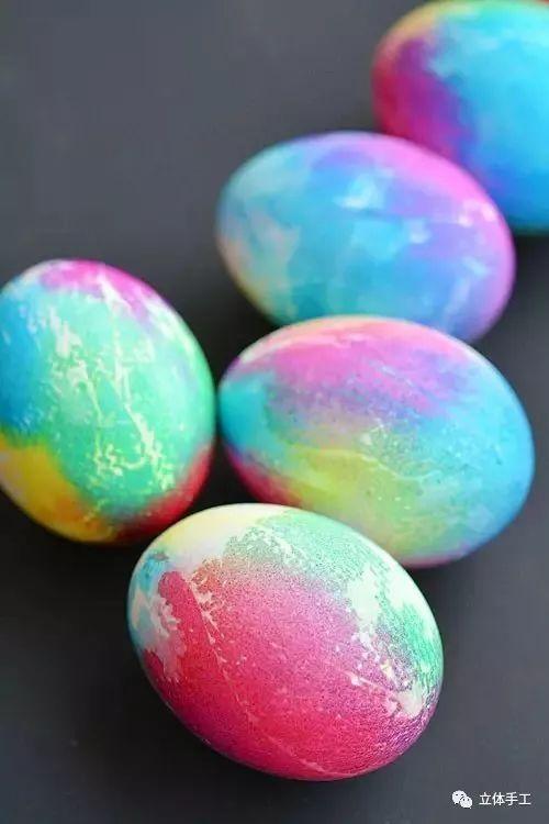 等待几分钟后,把卫生纸打开,鸡蛋就染好了~这样五颜六色的鸡蛋真的好美呀!