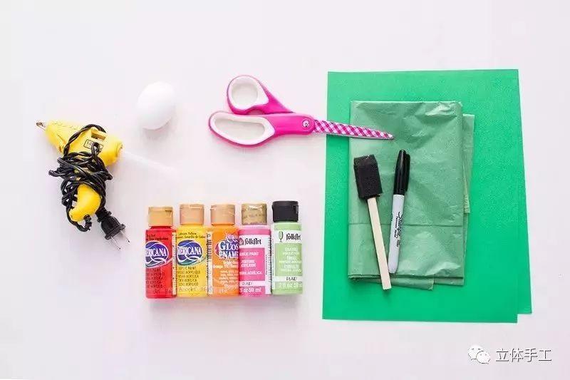【准备材料】鸡蛋、胶水、剪刀、褶皱纸、线