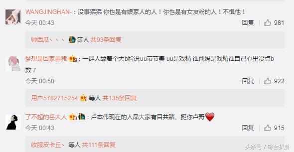 而卢本伟微博下面的评论,好像也是卢本伟的粉丝: