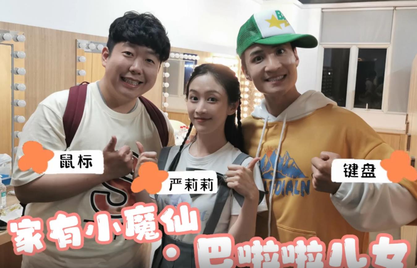 在后台,严莉莉和师父小月合影,和游乐王子合影,和《家有儿女》的键盘和鼠标合影,俏皮地称这是家有小魔仙,巴啦啦儿女,一代人的回忆,两部经典影视作品,脑海中的记忆磁带,再次播放起来。