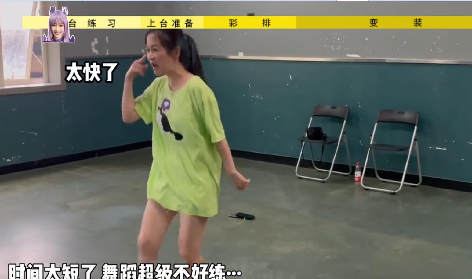 刘美含还在社交平台上晒出后台的准备花絮,2个小时紧急排练练舞,让时间看上去有些短促,毕竟已经过了15年没有练习,也没在正式舞台上跳主题曲,严莉莉动作都有些许的忙乱。