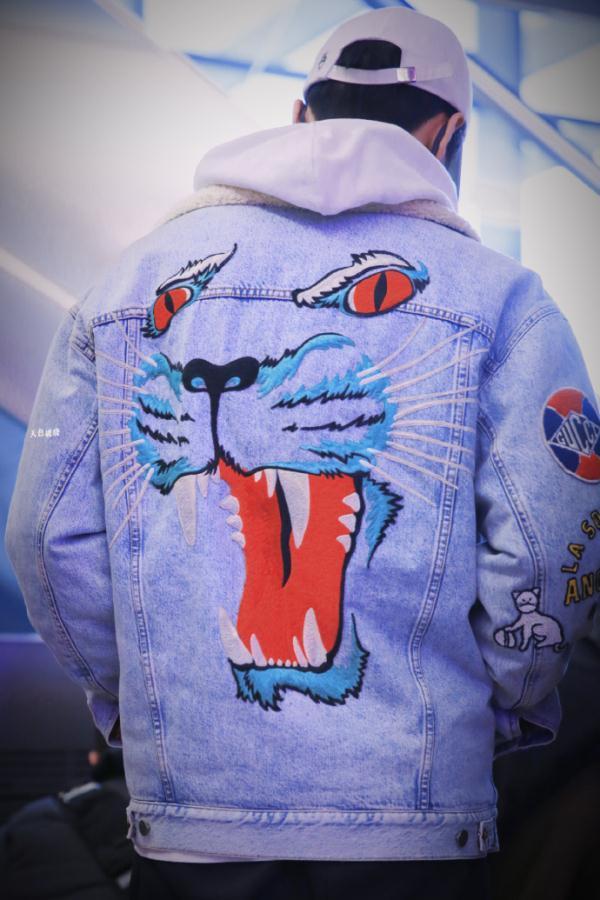 不过,鹿晗的外套却比较吸睛,带点小夸张的设计感,十分个性。牛仔夹克上点缀各种花卉、刺绣,立马让酷帅利落的夹克衫外套多了几分精致与华美之感。外套背后的老虎刺绣更是酷帅霸气,强大气场立显。
