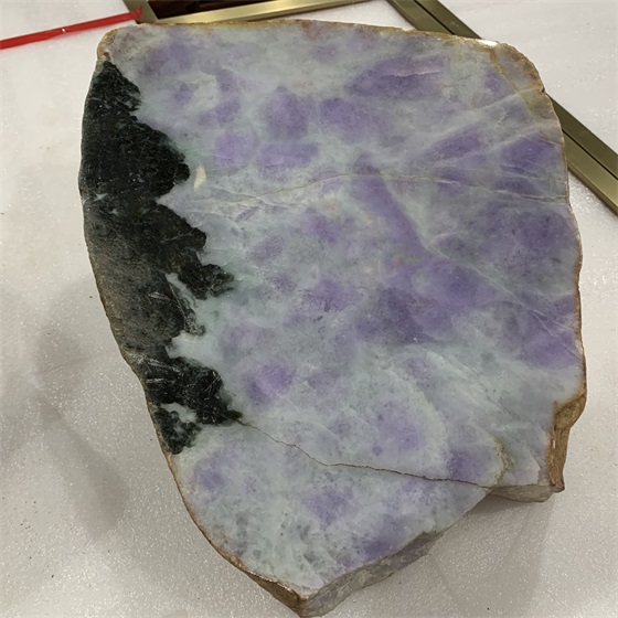 真翡翠原石手感柔滑,晶粒无剥离现象,假原石手感刺硬,晶粒有落砂现象。