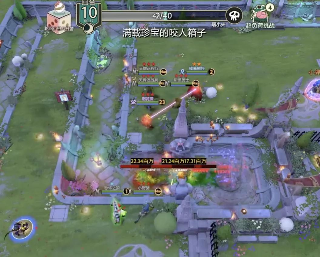 这个阶段或者更早的时候,英雄升到3星,有钱了自然是补3星装备了,部分英雄的3星关键装是A杖(阿哈利姆神杖),比如小鹿。其他英雄对A杖的优先级就没有那么高了,甚至于没有A杖效果。因为前期缺乏攻速的关系,对依赖普攻频率来输出的英雄来说灾劫之星是个不错的选择,而15波的钱箱也是单个怪不需要考虑3级的大狂战。然后就是把身上的装备能升级的都升一遍,等着打钱。如果这个阶段你发现怪基本上秒死,那么可以考虑继续拉高超负荷的等级了。这个阶段最起码是2级超负荷,稍微顺一些都可以直接4级拉满了。