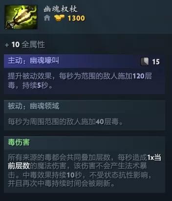 单卡前期守关比较吃力则可以配置一个幽魂权杖,幽魂权杖的效果是给周围小范围的单位上毒dot(持续性伤害),属于魔法伤害但是几乎不吃任何增益效果但是需要计算怪物魔抗,如果不拉超负荷的话,无论什么英雄在前4波都是没有压力的。