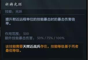 天辉近战,近战单位获得40%技能伤害加成,天辉远程,远程单位获得150%的技能爆伤加成;