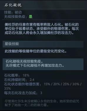攻击的时候概率石化目标,使敌方获得物理增伤效果,控场+增伤,物理常备辅助。