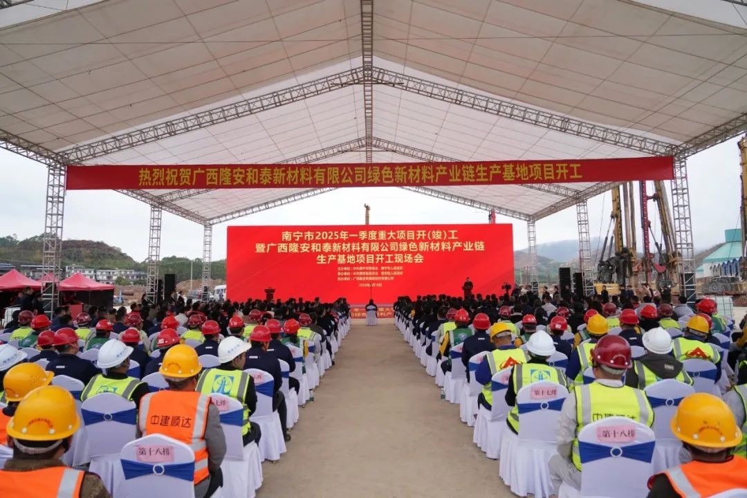 2月18日,南宁市2025年一季度重大项目开(竣)工暨广西隆安和泰新材料有限公司绿色新材料产业链生产基地项目开工现场会在隆安县举行。近期,隆安县共有4个项目开(竣)工。