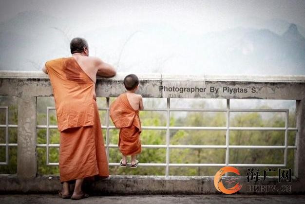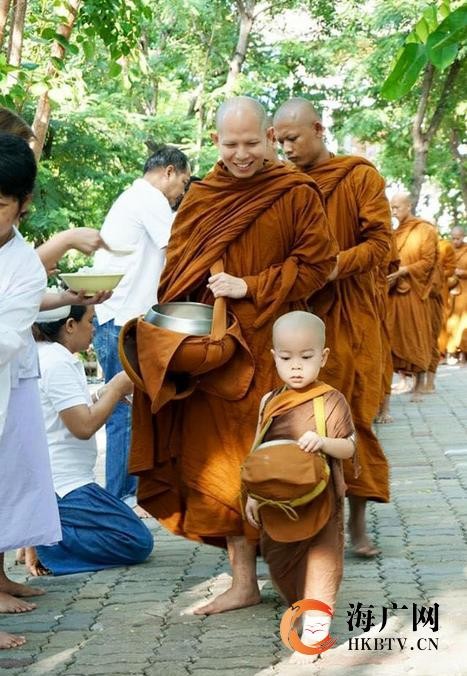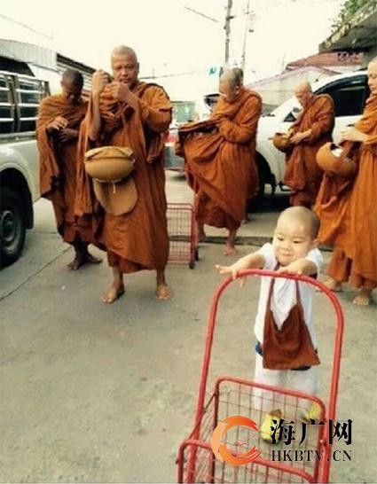 虽然Nongkorn很喜欢睡觉,但是有时也是很认真的,比如每天他都会随着师傅外出化缘。