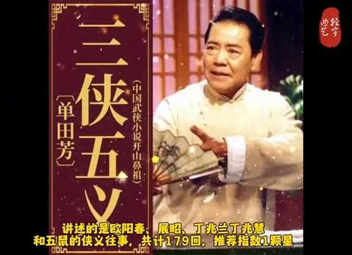 ·第十名:三侠五义,中国武侠小说开山鼻祖。讲述的是欧阳春、展昭、丁兆兰、丁兆慧和五鼠的侠义往事,共计179回,推荐指数1颗星。